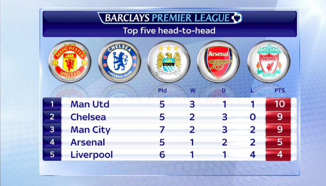 The full head to head record for man utd vs man city including a list of h2h matches, biggest man u wins and largest manchester city victories.
