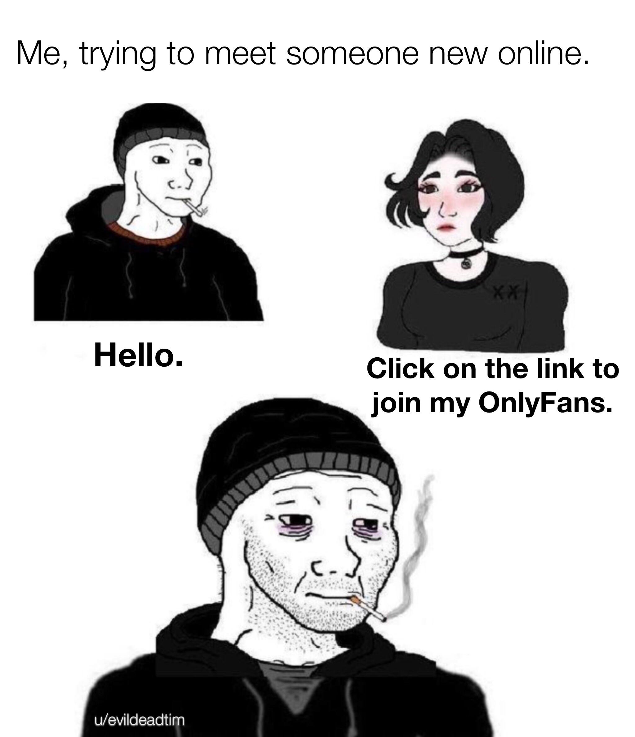 Onlyfans Simp Meme : Get A Load Of This Simp Are Simp Memes A Thing R Dankmemes / 19.11.2021 · avant tu payais un abo tu avais accès à toutes les videos de la meuf ou de la transseulement, c'était prévisible, il y a eu pleinnde bots créés sur github pour parser et …. In march 2020, many of idubbbz's fans took to social media after his girlfriend, anisa jomha, announced her lewd onlyfans on twitter. I can't do the inspect elements trick either; 8.10.2021 · i am from india and from my limited interaction with men of mongoloid ethnicity (nepalese , men from north eastern part of my india) , i have observed that they are quite based and red pilled with respect to women. Watch belle delphine is back! They never put women on pedestal and simp or cuck for them.